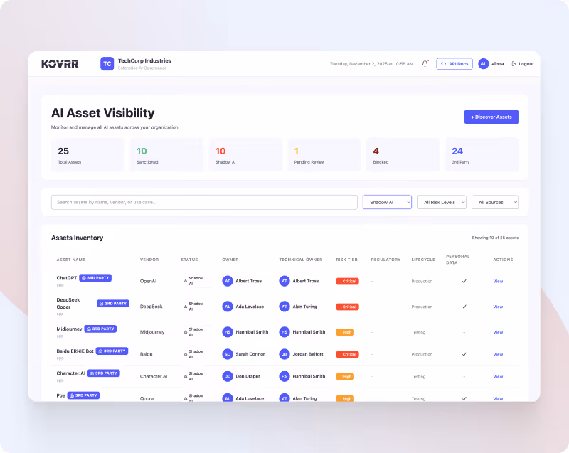 Kovrr’s AI Asset Visibility module discovers and updates every GenAI system continuously, giving GRC teams a real-time foundation for oversight and governance.