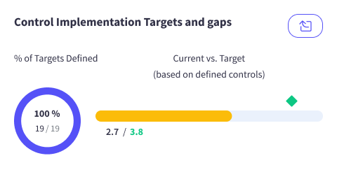 This visualization shows the percentage of controls with defined targets and quantifies the average difference between current and desired maturity scores.