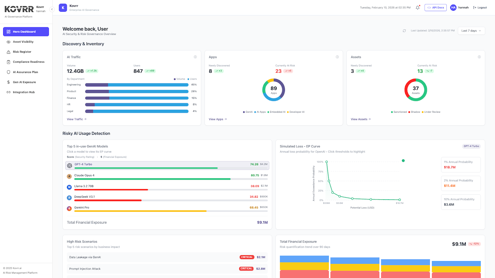 - Kovrr’s AI Governance Suite home dashboard has been enhanced to better reflect day-to-day operational oversight.