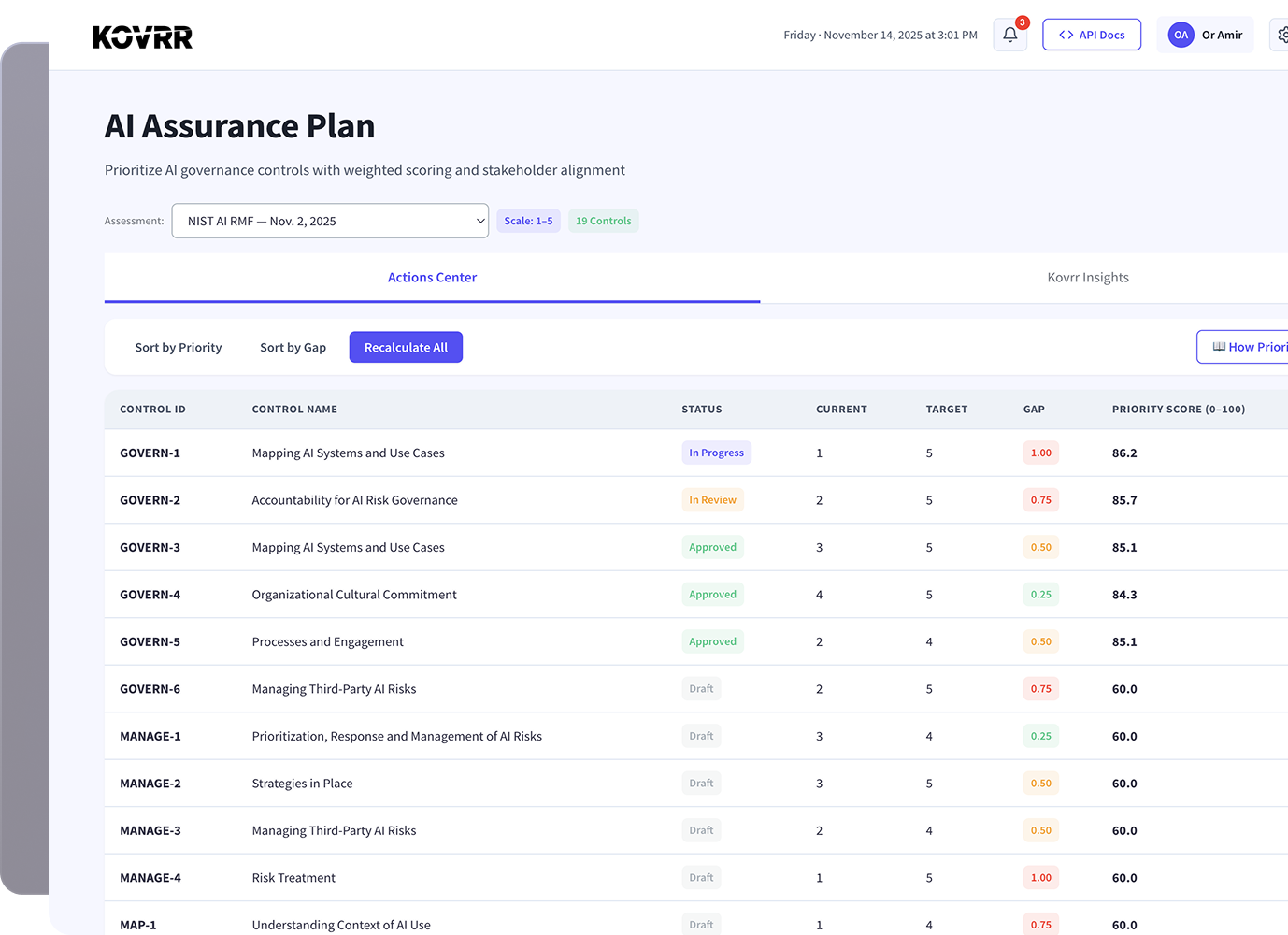 Kovrr’s AI Assurance Plan highlights which safeguards deliver the greatest maturity gains.